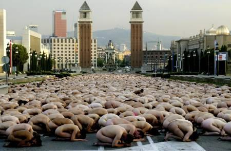 | Tunick photographie une foule nue de 7.000 personnes à Barcelone | |
