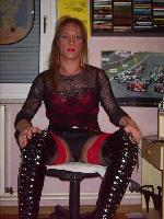 Chloé, belle travestie soumise de 34 ans, longs cheveux blonds naturels, yeux bleus, 1m80, 74 kg, totallement épilée.